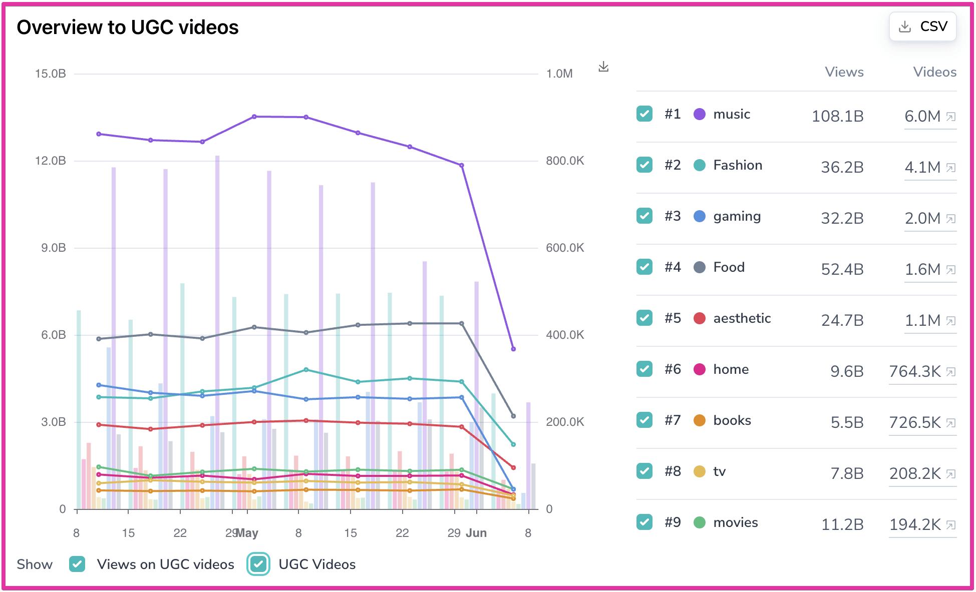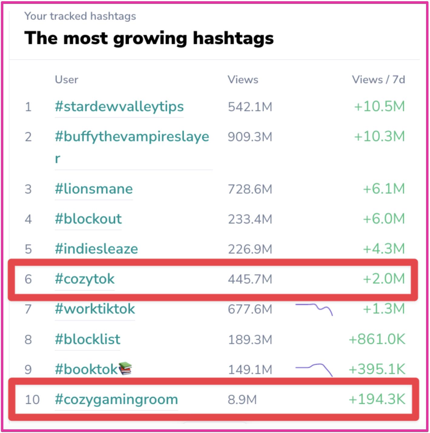 This example shows the growth of two cozy culture subthemes I’ve been tracking for a while. The image represents their growth trends on TikTok.