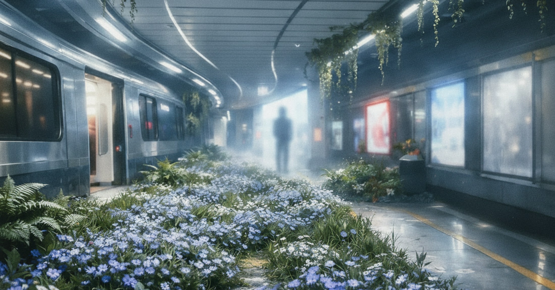 Dreamcore aestetic often involves wildflowers and grass in liminal spaces.