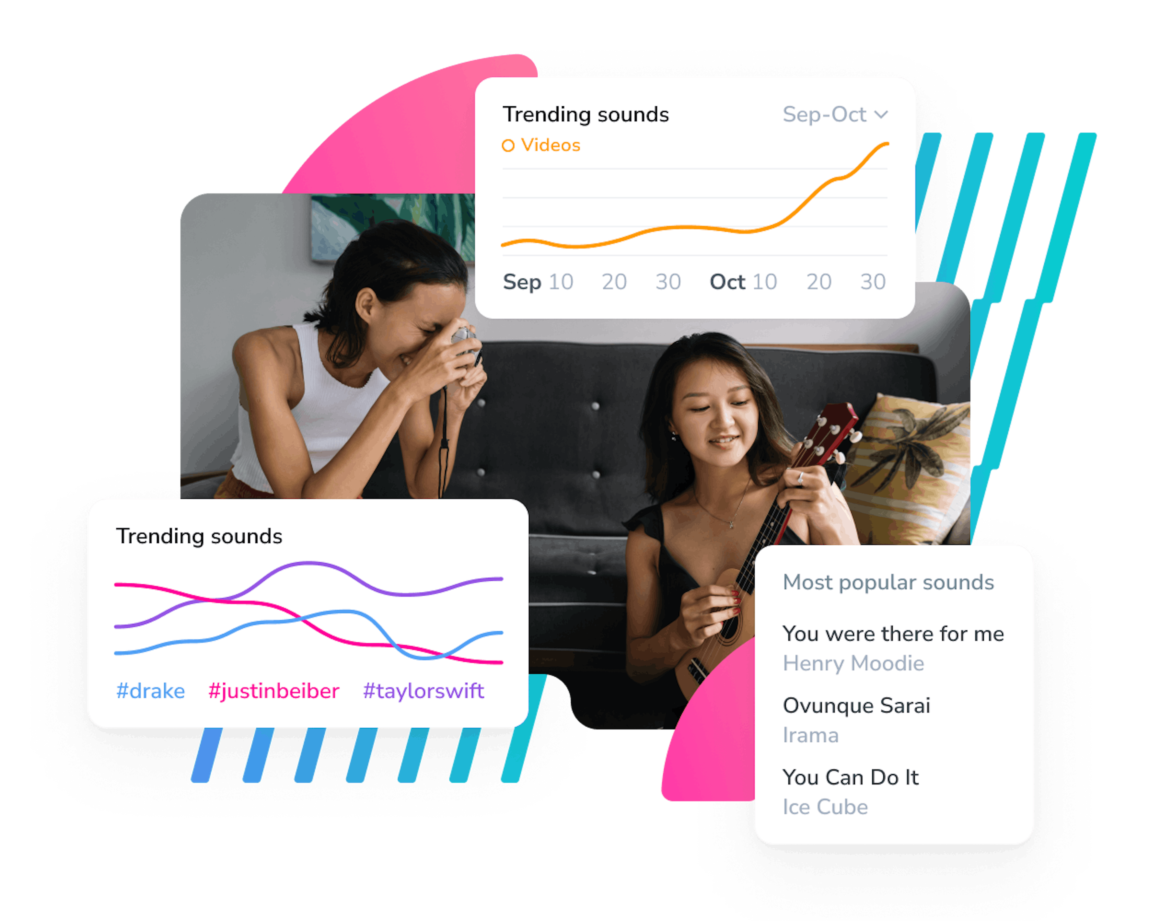 Obtenez une vue d'ensemble de la musique pertinente pour votre marque, explorez les sons les plus tendance et suivez leur évolution dans le temps.