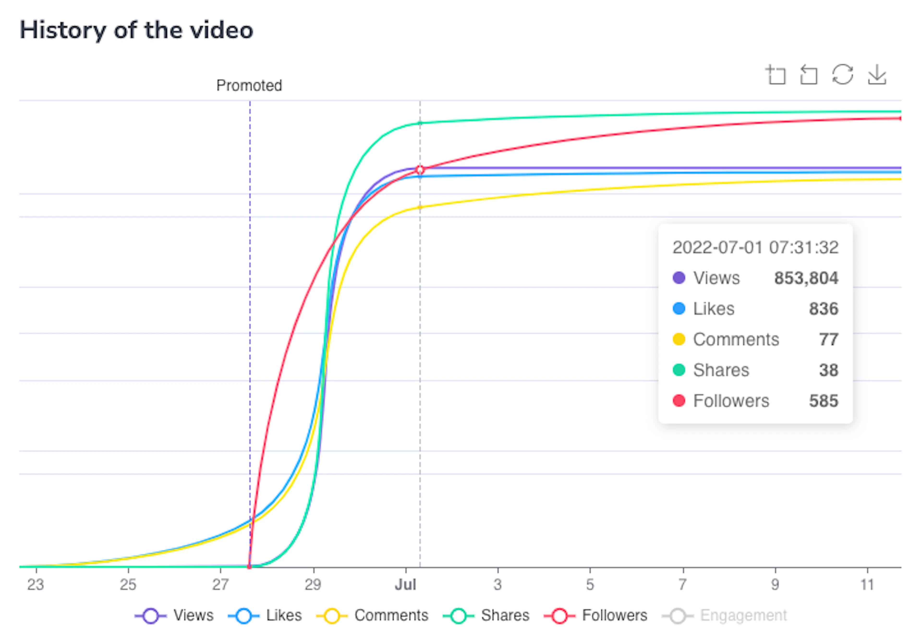 Anda dapat melihat apakah audiens untuk video TikTok mana pun telah diperbesar dengan promosi berbayar! Gunakan informasi ini untuk mengetahui iklan TikTok terbaik, cari tahu strategi iklan pesaing Anda, dan lihat apa yang berhasil.