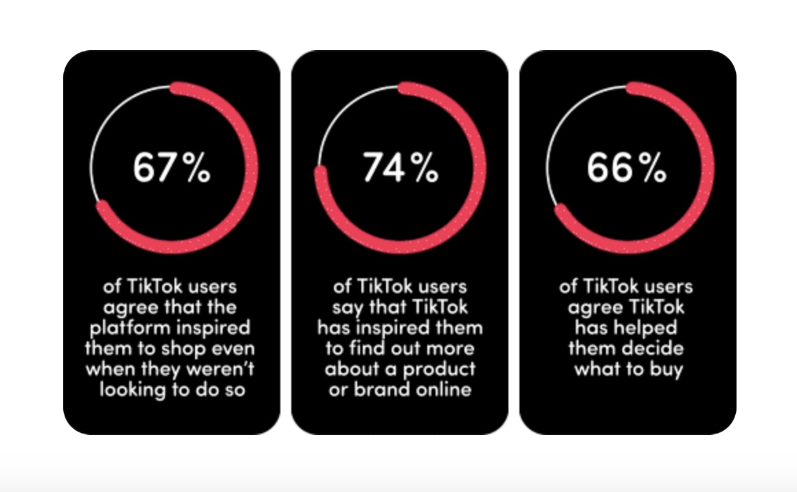 - 67% van de TikTok-gebruikers zei dat het platform hen "inspireerde om te winkelen, zelfs als ze dat niet wilden".