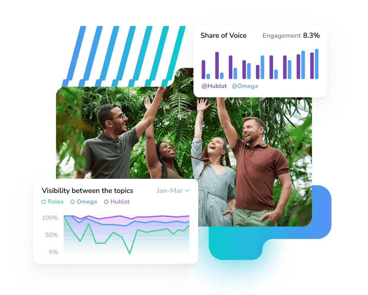 Analyseer de merkgroei door toegang te krijgen tot share of voice views en splits alle contentprestaties uit volgens relevante statistieken.