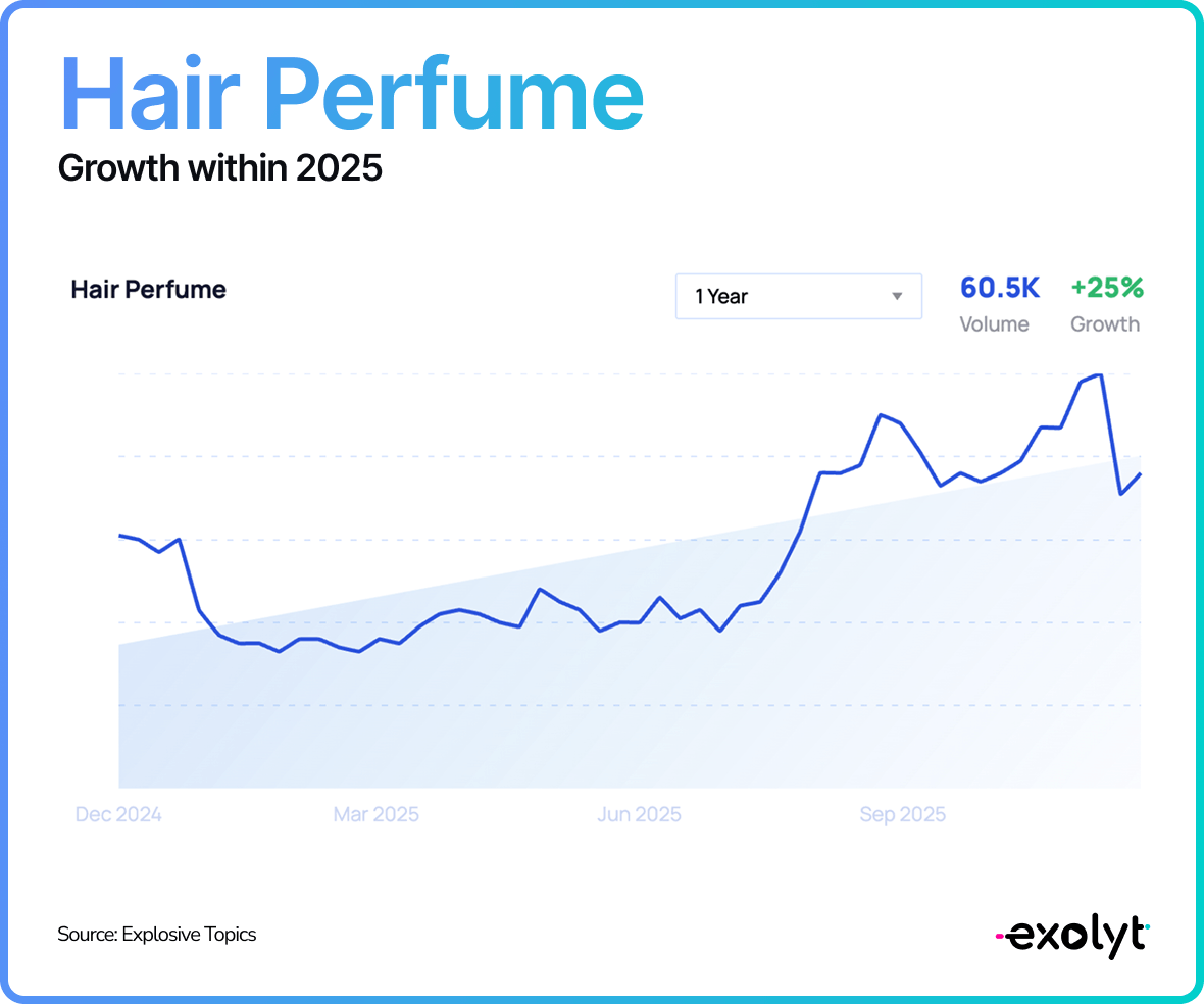 Although it’s much easier to buy Kitsch direct from the brand on TikTok (they love utilising a TikTok live shopping event) we’ve also seen a 25% increase in Google searches for Kitsch hair perfume year on year.