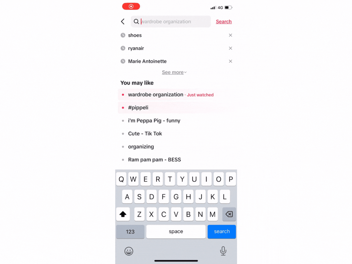 A opção de pesquisa permite que os usuários explorem vários conteúdos, incluindo vídeos de tendências, hashtags populares e sons de tendências - Digite uma palavra-chave relevante para o seu negócio e você poderá encontrar tópicos relacionados em seu nicho ou categoria de negócios.