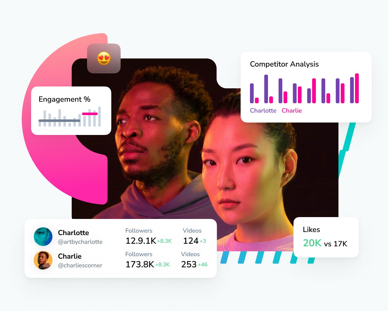 Ta reda på vad dina konkurrenter gör och hur deras innehåll presterar. Jämför enkelt dina TikTok-konton sida vid sida.