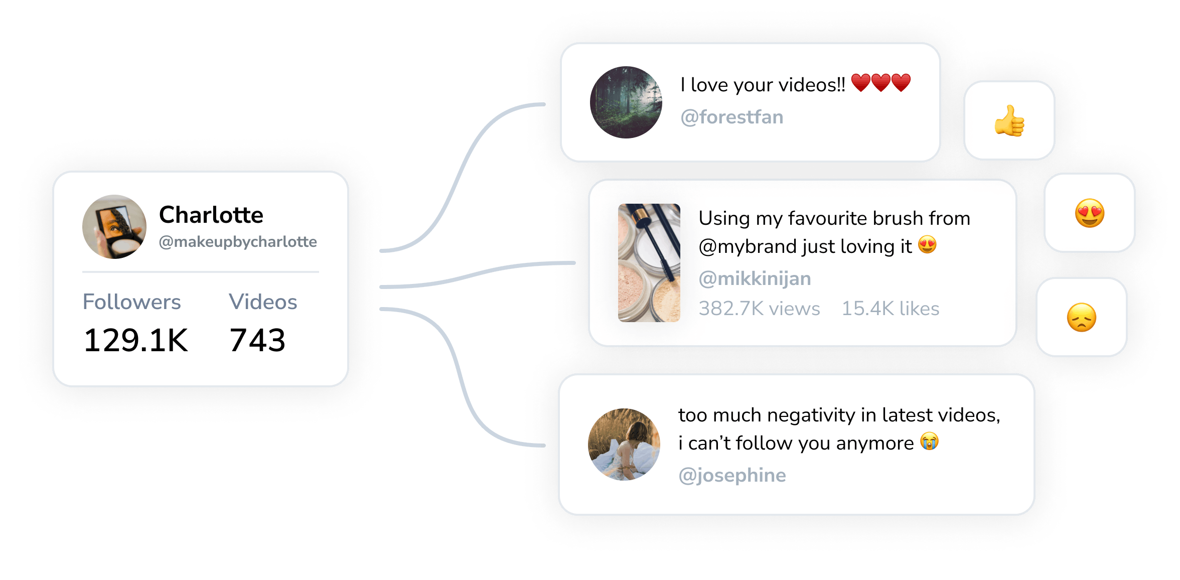 Övervaka varumärkets image på ett effektivt sätt genom att ta del av publikens känslor i videor, reaktioner och kommentarer.