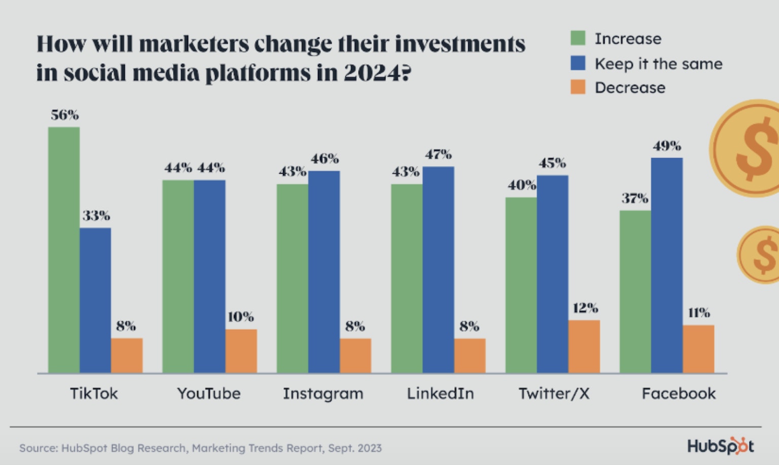 اسی رپورٹ سے پتہ چلتا ہے کہ مختصر ویڈیو فرسٹ ایپس میں سرمایہ کاری، خاص طور پر TikTok، دوسرے پلیٹ فارمز کے مقابلے میں آسمان چھو رہی ہے، کیونکہ مختصر شکل والی ویڈیو سب سے زیادہ مواد ROI پیش کرتی ہے۔