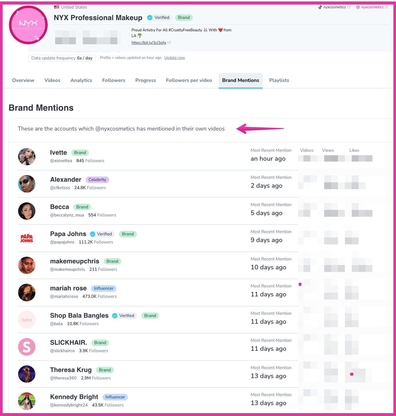 آپ یہ بھی دیکھ سکتے ہیں کہ آپ کے حریف کس کے ساتھ تعاون کر رہے ہیں تاکہ متاثر کن کی قسم کا اندازہ لگایا جا سکے جو آپ کے برانڈ کے لیے بھی اچھا کام کرے گا۔