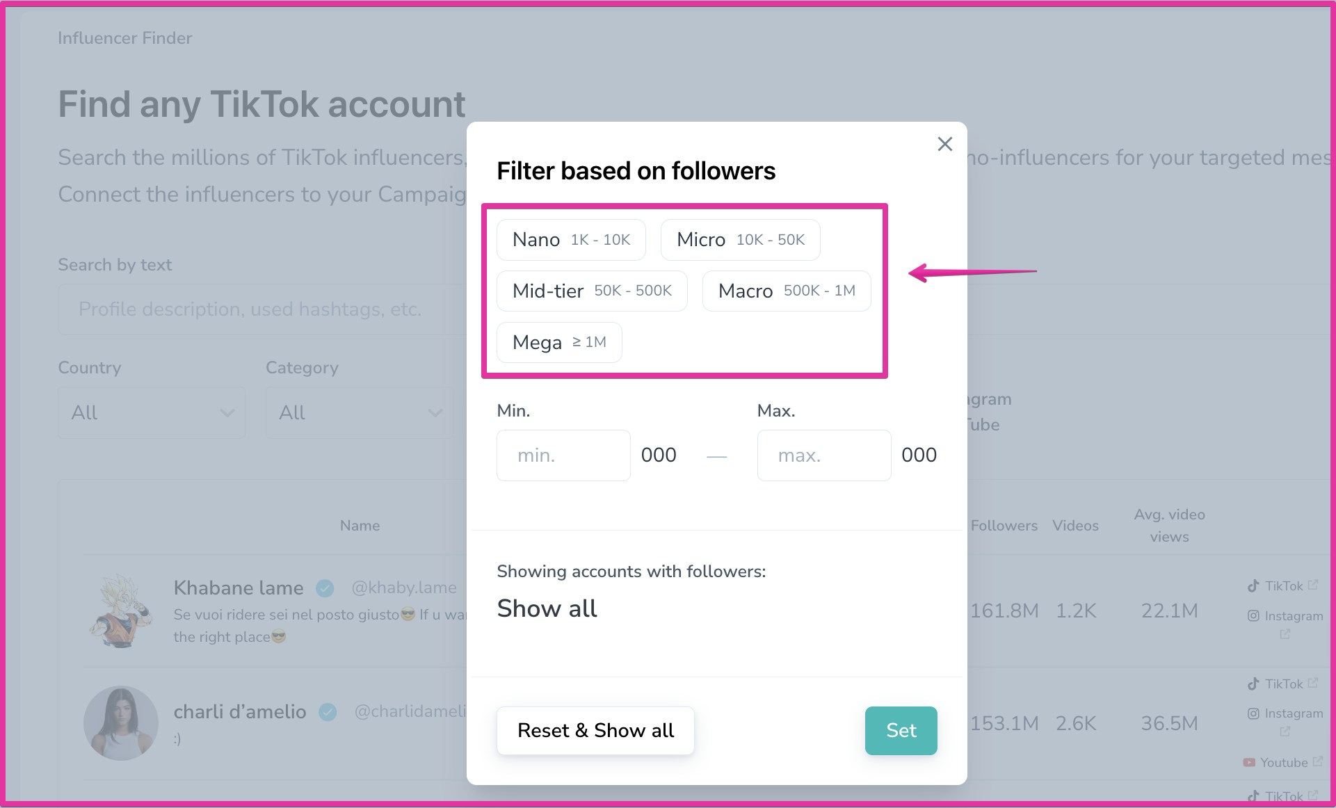انفلوئنسر مارکیٹنگ کے ساتھ شروع کرنے کے پہلے اقدامات میں سے ایک یہ ہے کہ آپ اپنے مقام میں متعلقہ اثر انگیز افراد کو تلاش کریں۔ متاثر کن افراد کو منتخب کرکے جن کے سامعین آپ کے ہدف والے صارفین سے میل کھاتے ہیں، آپ زیادہ موثر تعاون کو یقینی بنا سکتے ہیں جو تعامل اور اشتراک کو آگے بڑھاتا ہے۔ آپ اپنی صنعت میں مواد تخلیق کاروں کی نگرانی کرکے یا TikTok Analytics اور Influencer Finder ٹولز کا استعمال کرکے دستی طور پر یہ کام کرسکتے ہیں۔