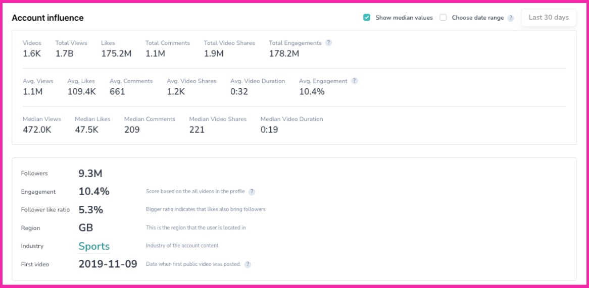 Thông tin này được thu thập từ việc phân tích mức độ tương tác, hồ sơ người theo dõi và hashtag trên Exolyt, cùng với các số liệu thống kê về cảm xúc và quảng cáo video khác.